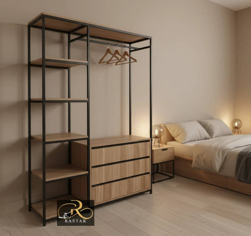 - جنس: ترکیب فلز ضد زنگ و چوب MDF که ضد خش و ضد آب است، ضمانت دوام و ماندگاری بالای محصول را فراهم میکند.
