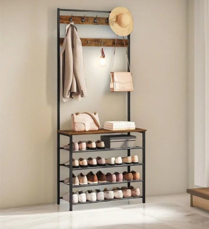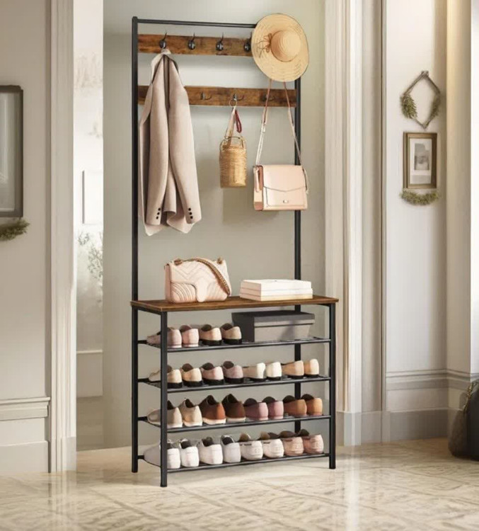 جا کفشی 5 طبقه و آویز لباس فلزی چوبی مدرن.