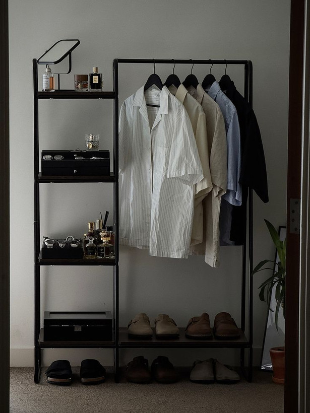 🔸 بخش آویز لباس فضای کافی برای نگهداری پیراهن، مانتو یا کت دارد و طبقات جانبی برای کفش، کیف، عطر و اکسسوری طراحی شدهاند.