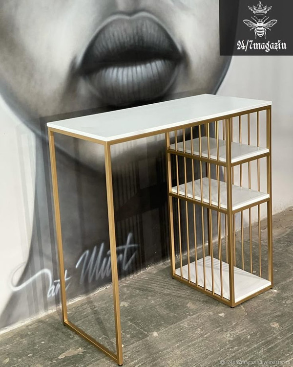 طراحی هندسی این میز علاوه بر جلوهی دکوراتیو، امکان استفاده کاربردی را نیز فراهم کرده است — از آن میتوانید بهعنوان میز کنسول، میز پذیرایی یا میز کار سبک در فضاهای خانگی و اداری بهره ببرید.