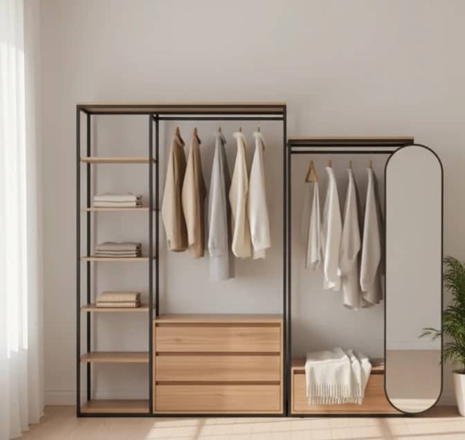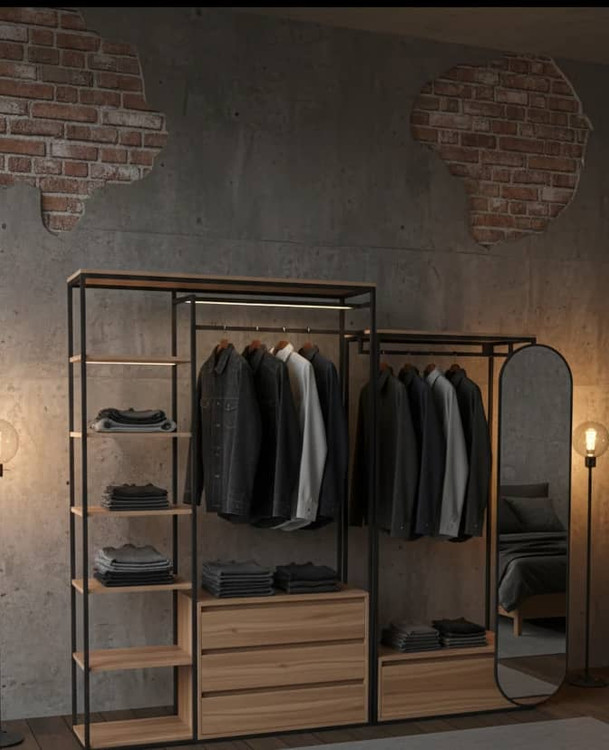 ترکیب سازه فلزی مقاوم با متریال چوبی باکیفیت، دوام بالا و ظاهری شیک را تضمین میکند و این ست را به گزینهای ایدهآل برای اتاق خواب، اتاق لباس، بوتیکها و فضاهای مدرن تبدیل کرده است.