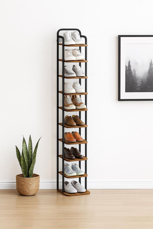 انتخابی ایدهآل برای افرادی که به نظم، زیبایی و استفاده بهینه از فضا اهمیت میدهند. این جاکفشی با طراحی عمودی و ۱۰ طبقه جادار، امکان نگهداری تعداد زیادی کفش را بدون اشغال فضای زیاد فراهم میکند.