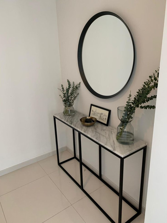 آینه گرد با ایجاد حس عمق و نور بیشتر در فضا، جلوهای شیک و امروزی به دکوراسیون میبخشد و کنسول نیز فضای مناسبی برای قرار دادن اکسسوری، دکوری یا وسایل روزمره فراهم میکند.
