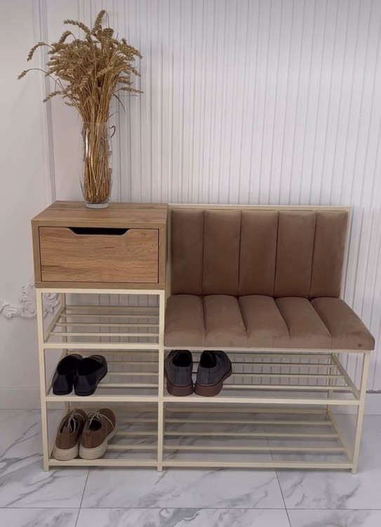 وجود پاف نرم و راحت، فضایی مناسب برای نشستن هنگام پوشیدن کفش را فراهم میکند و در کنار آن، کشوی جادار امکان نگهداری وسایل ضروری را به سادهترین شکل در اختیار شما قرار میدهد. همچنین بخش اختصاصی جا کفشی، به مرتب نگه داشتن کفشها کمک کرده و از شلوغی فضا جلوگیری میکند.