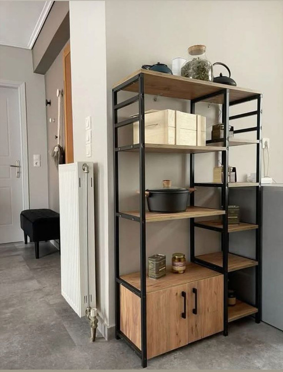 این شلف چندمنظوره با طراحی مدرن، فضای کافی برای نگهداری ظروف، لوازم و وسایل دمدست رو فراهم میکنه و در کنار اون، کمد دربدار کمک میکنه وسایلی که نمیخوای دیده بشن رو مرتب و مخفی نگه داری 👌🏻