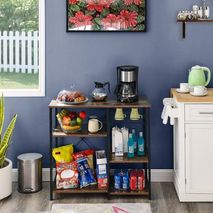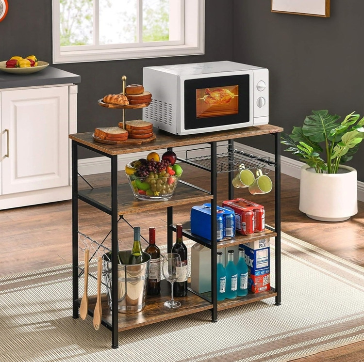 کافی بار ،قفسه آشپزخانه،پایه ماکرویو و تستر،قفسه نگهداری ظروف،پارتیشن باز به همراه آویز جهت افزایش کارایی این شلف چند طبقه.